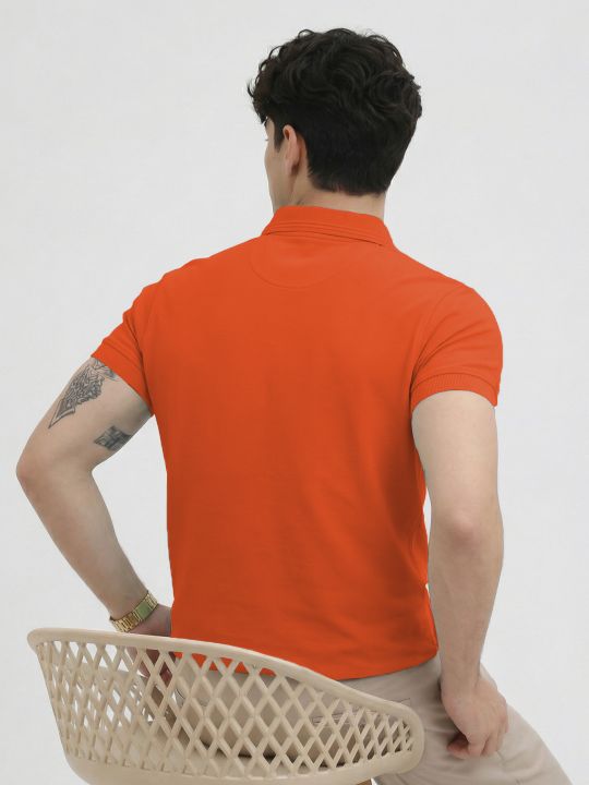 Basic Orange Double Butt Collared Pique Polo T Shirt