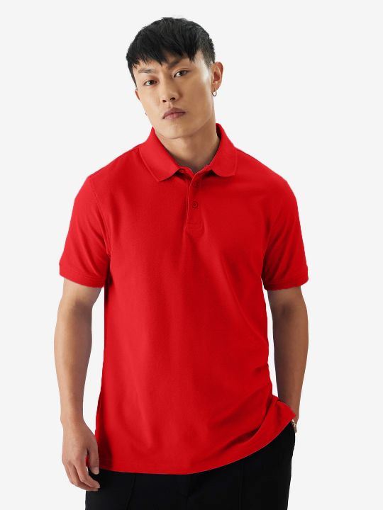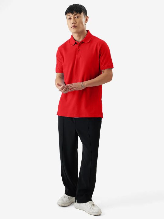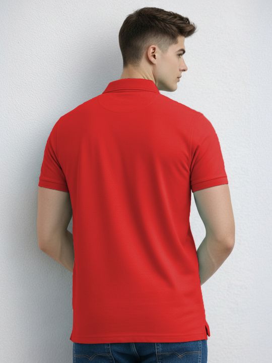 Basic Red Double Butt Collared Pique Polo T Shirt