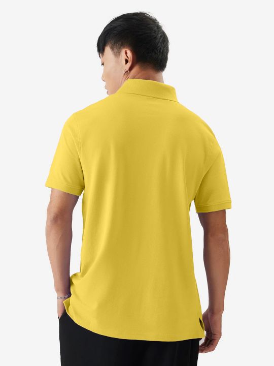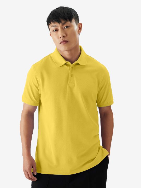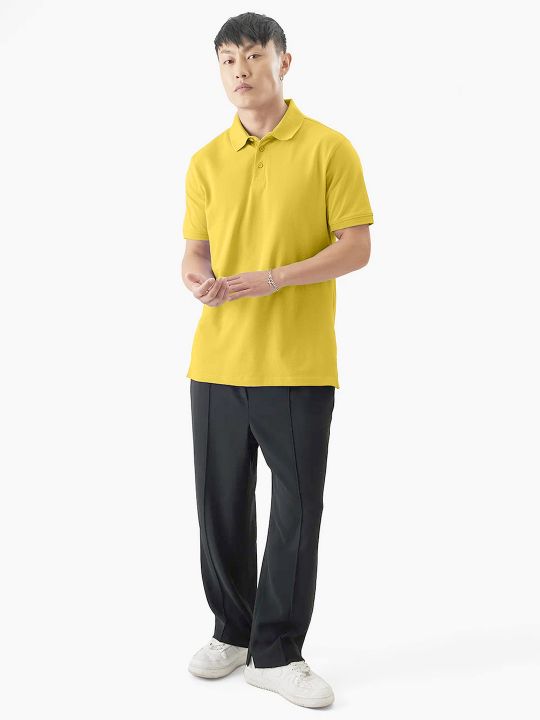Basic Yellow Double Butt Collared Pique Polo T Shirt