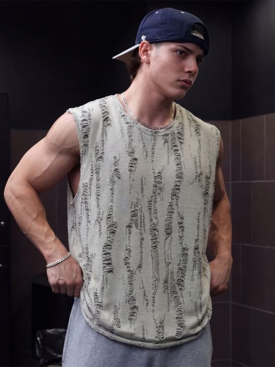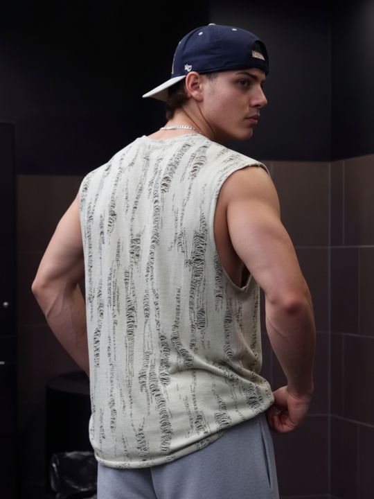 Distressed Ultimate Grey Tank For Men