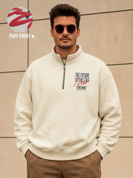 Future Off White Half Zip Stand Collar Relax Fit Sweatshirt For Men