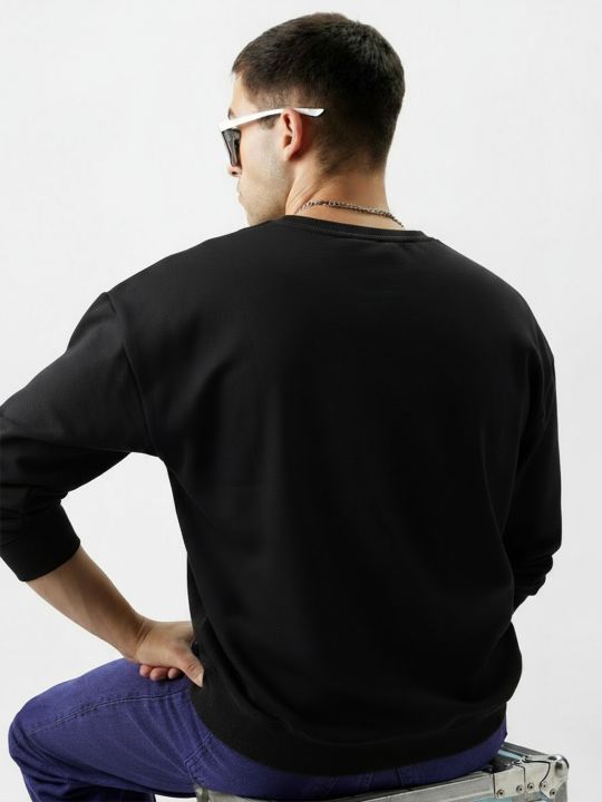 Feel The Freedom Black Relax Fit Sweatshirt For Men