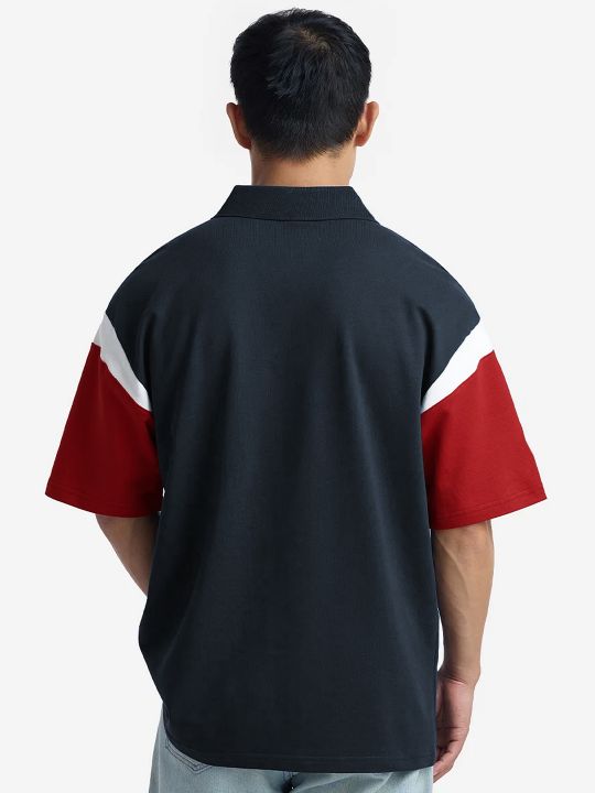 Colts Denim blue Colorblock Oversized Polo T Shirt For Men