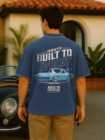 Navy Blue Fearless Oversized Polo T Shirt For Men