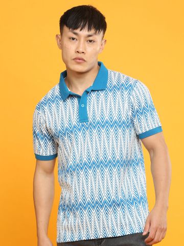 Royal Blue Zig Zag All Over Print Polo T Shirt