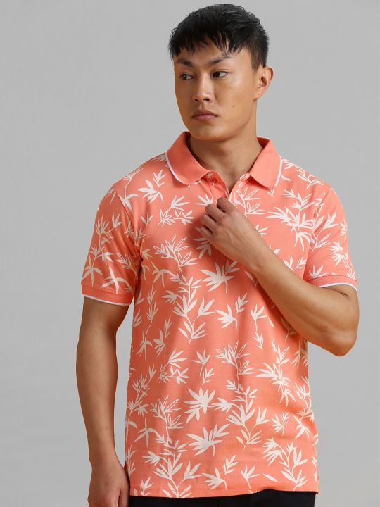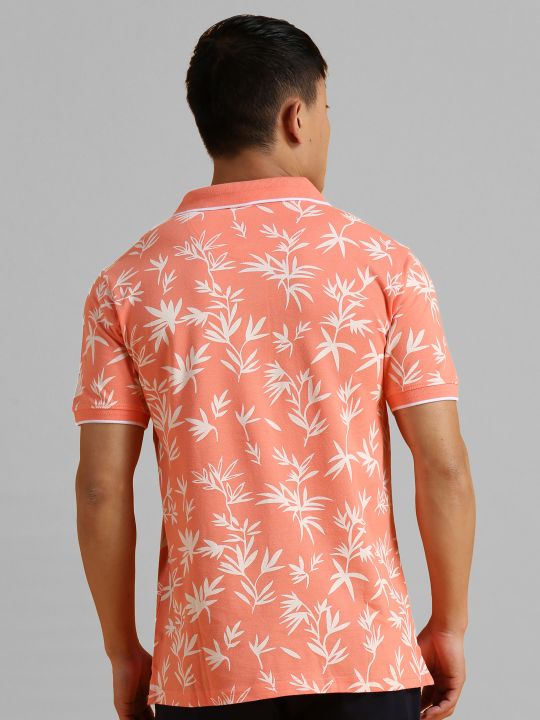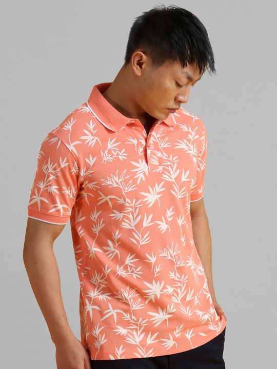 Peach Flower All Over Print Polo T Shirt