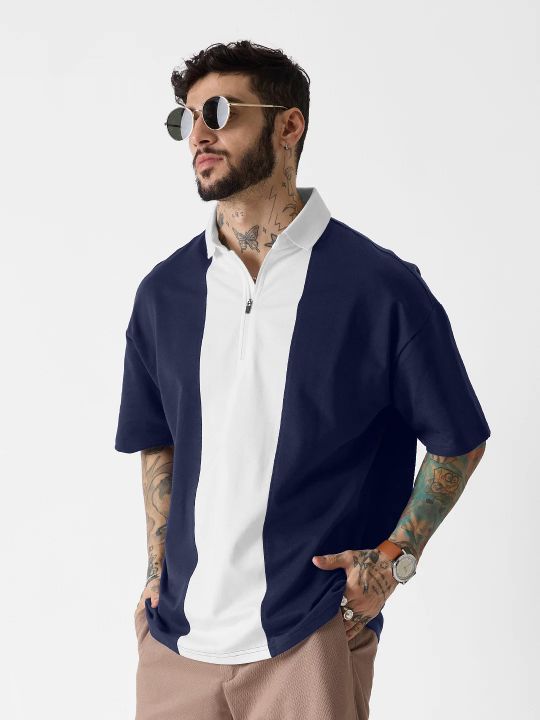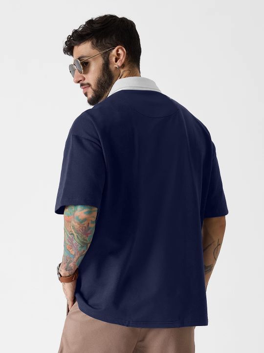 Navy Blue Fearless Oversized Polo T Shirt For Men