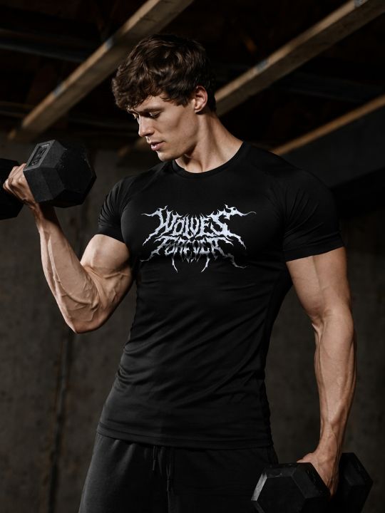 Wolves Forever Black Compression T Shirt For Men